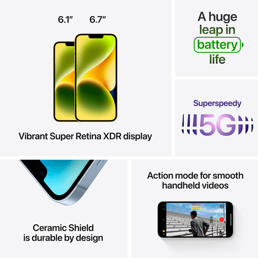 Op 7 september 2022 kondigde Apple de komst van de Apple iPhone 14 aan. De grootste verbetering is een camera waarmee je in elke situatie nog betere foto's kunt maken. Het ontwerp lijkt sterk op dat van de iPhone 13, maar Apple heeft aan de binnenkant van de smartphone veel verbeteringen doorgevoerd.